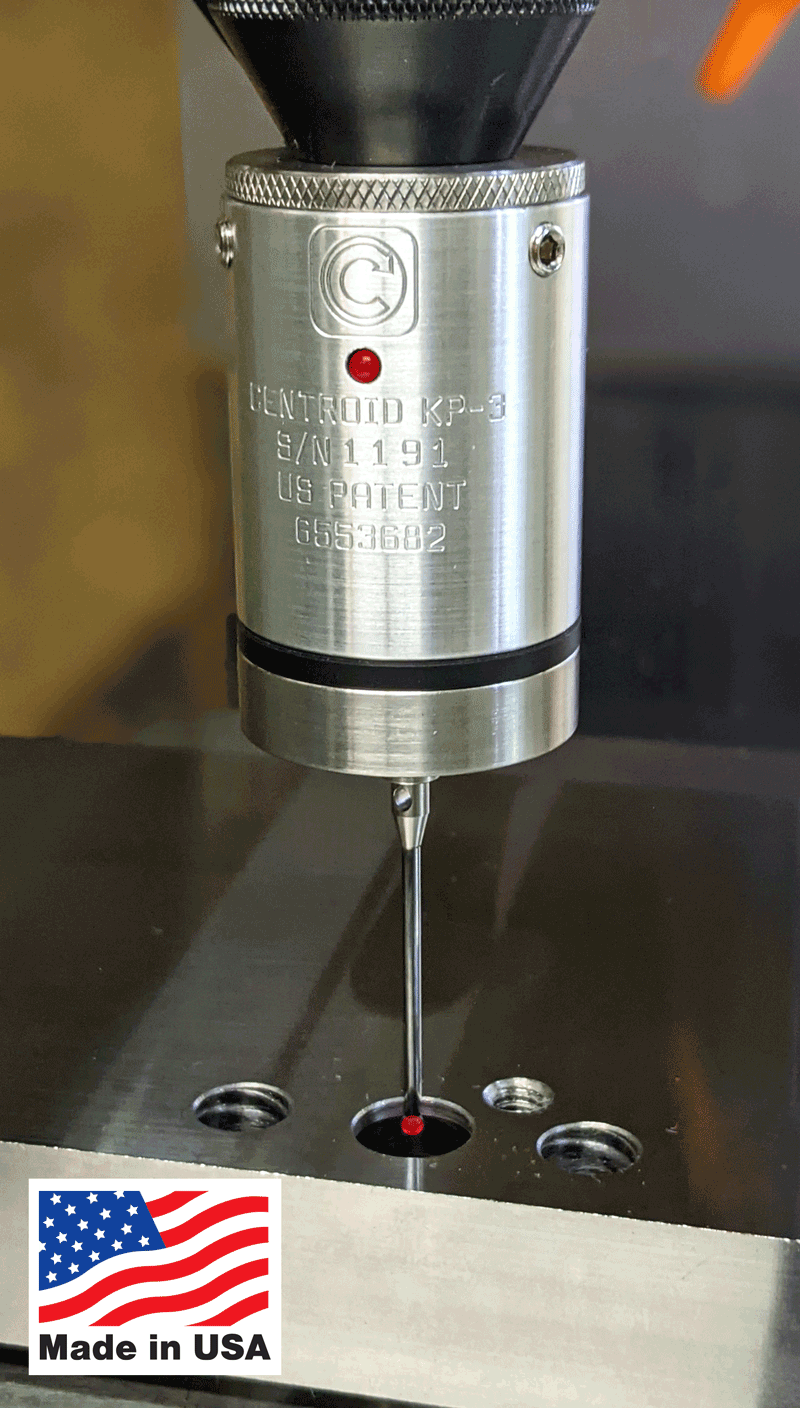Use the KP-3 probe to quickly and accurately find zero points on a vise, fixture or part. Eliminate operator error when setting zero points, finding edges, or center locations of bosses or bores, slots and webs. Eliminates the need for a centerfinder or an edgefinder. You'll never have to spend 30 minutes using a center finder to locate the center of a bore again. The probe will find and set the center of a bore in just seconds. In addition, the probe can be used to verify part dimensions and locations and many other applications. The KP-3 mounts in any 1/2" or 10mm tool holder and has concentric adjustment screws. Also compatible with Mach3/4, WinCNC, LinuxCNC, Pathpilot and others.
